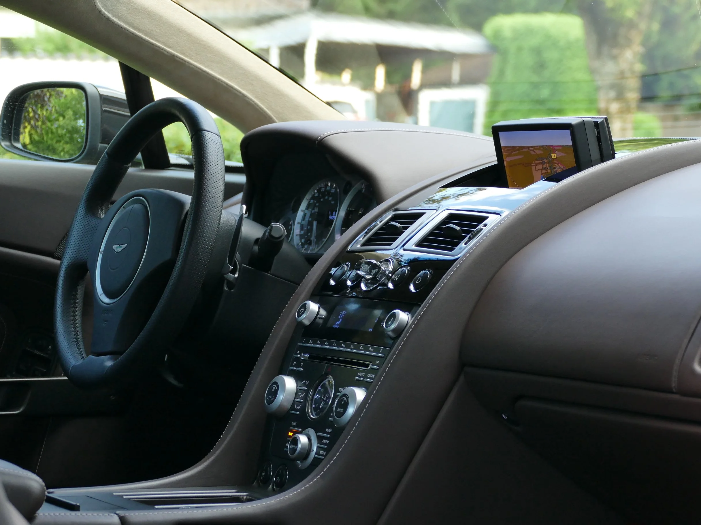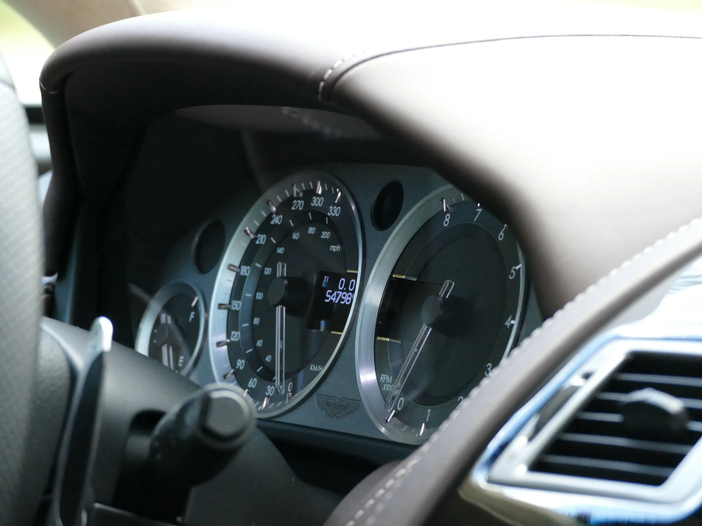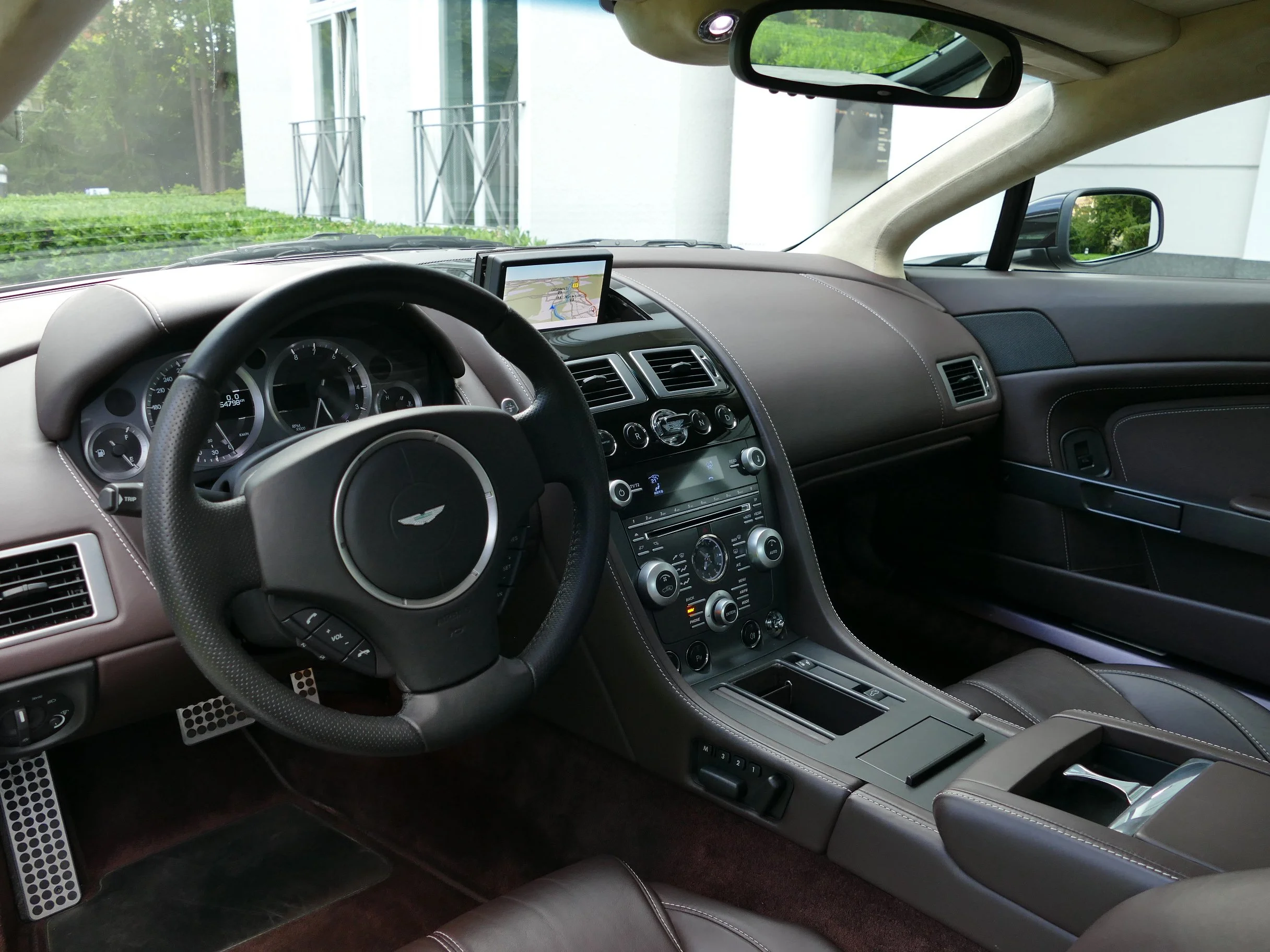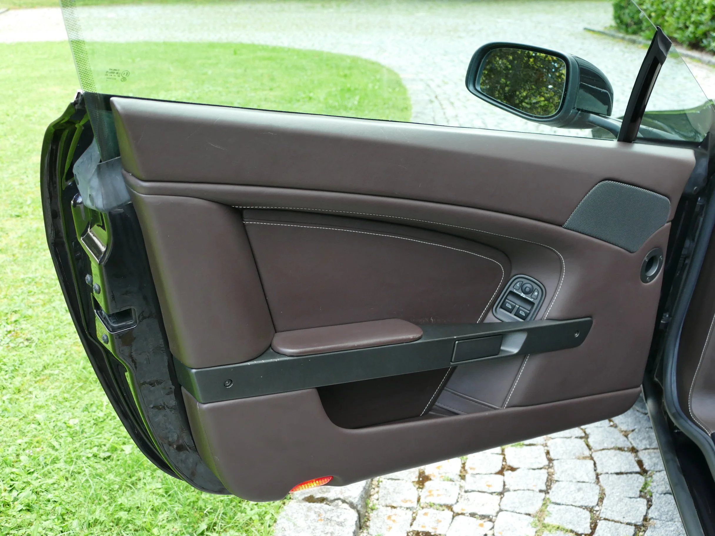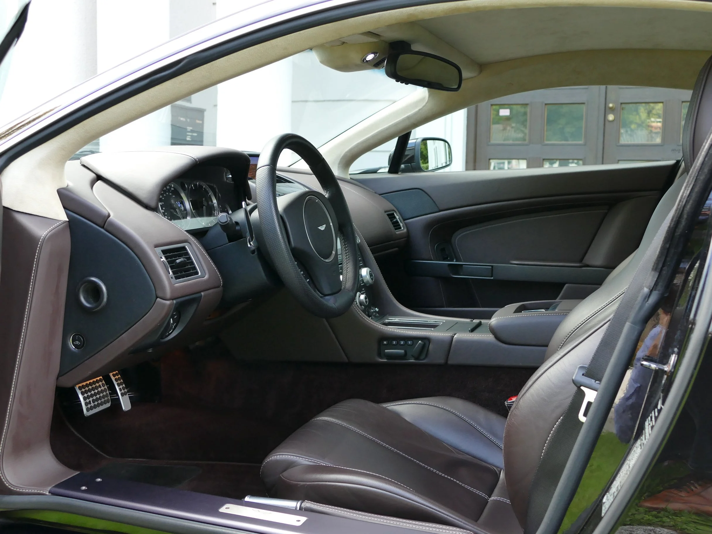 Options: 19 inch 5 spoke leightweight wheels, break callipers: black, headlights Xenon, powerfold mirrors, Navigation System Europe with TMC, Cruise Control, Bluetooth, front and rear parking sensors, bright finish grille, heated front seats wit memory, auto dim mirror with garage door opener, high spec alarm, glas smokers kit, Aston Martin Premium Audio 700 W